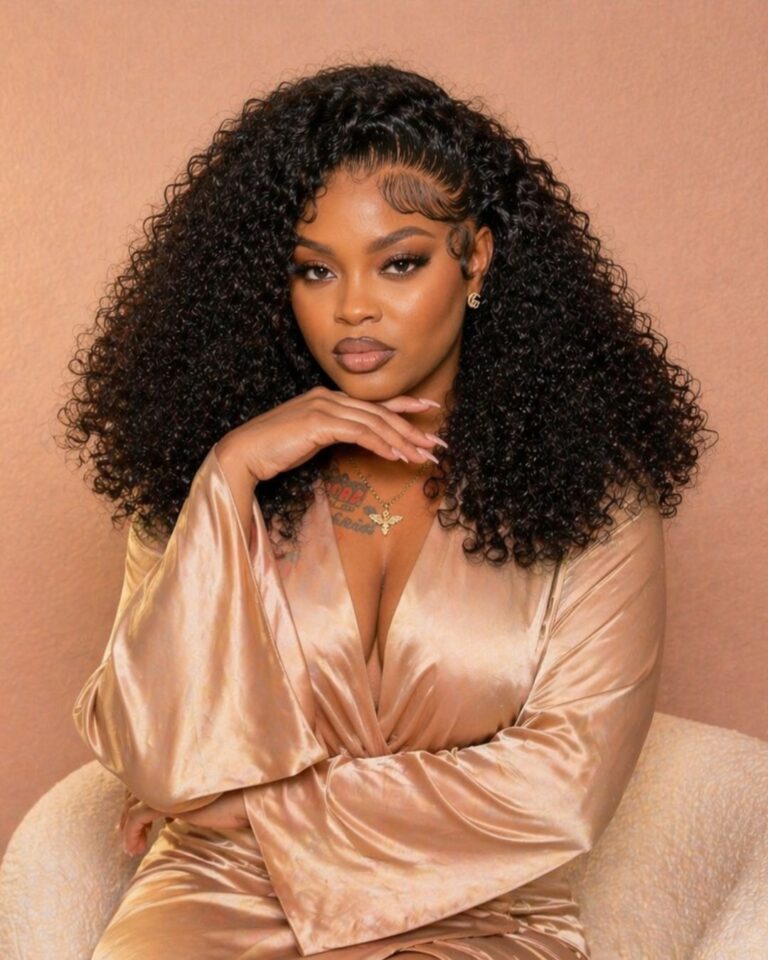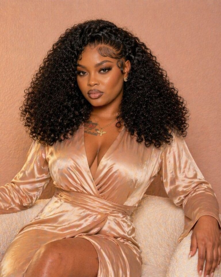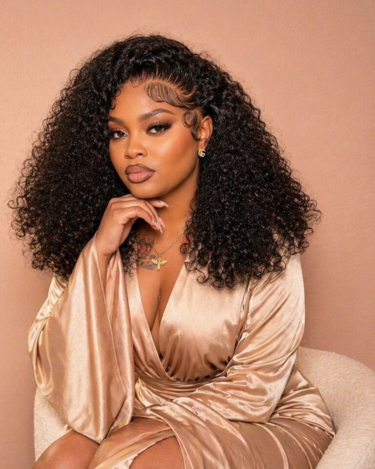 The frontal lace construction gives you a natural-looking hairline, allowing for middle and side parting options. It blends seamlessly, making this a great option if you’re looking for a natural black curly wig that looks realistic both in person and on camera.