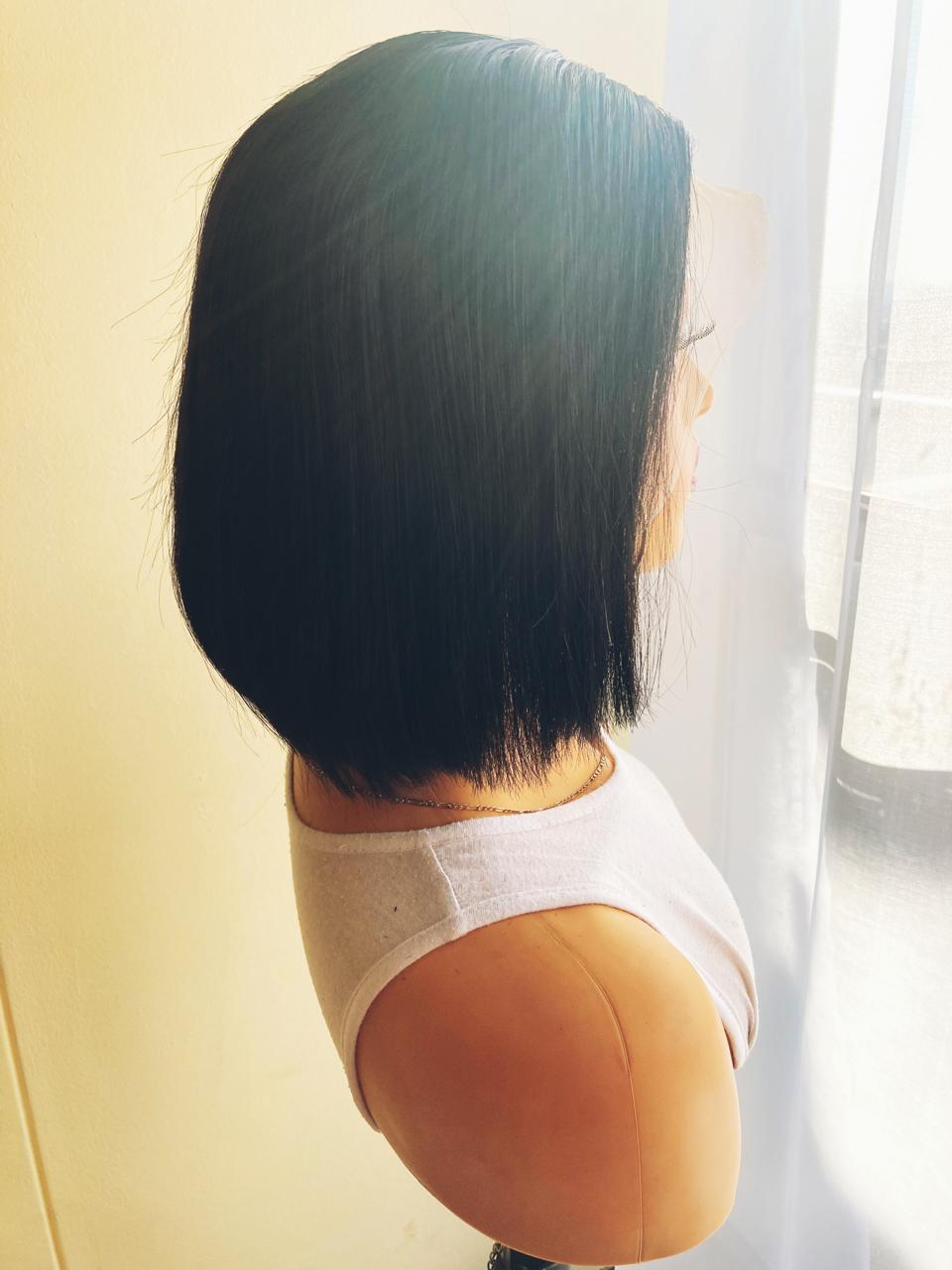 Ruby is a structured straight bob in a rich 99J tone. The 13×4 frontal allows natural styling while the bob length keeps the silhouette clean and intentional. Available in 8–16 inches.